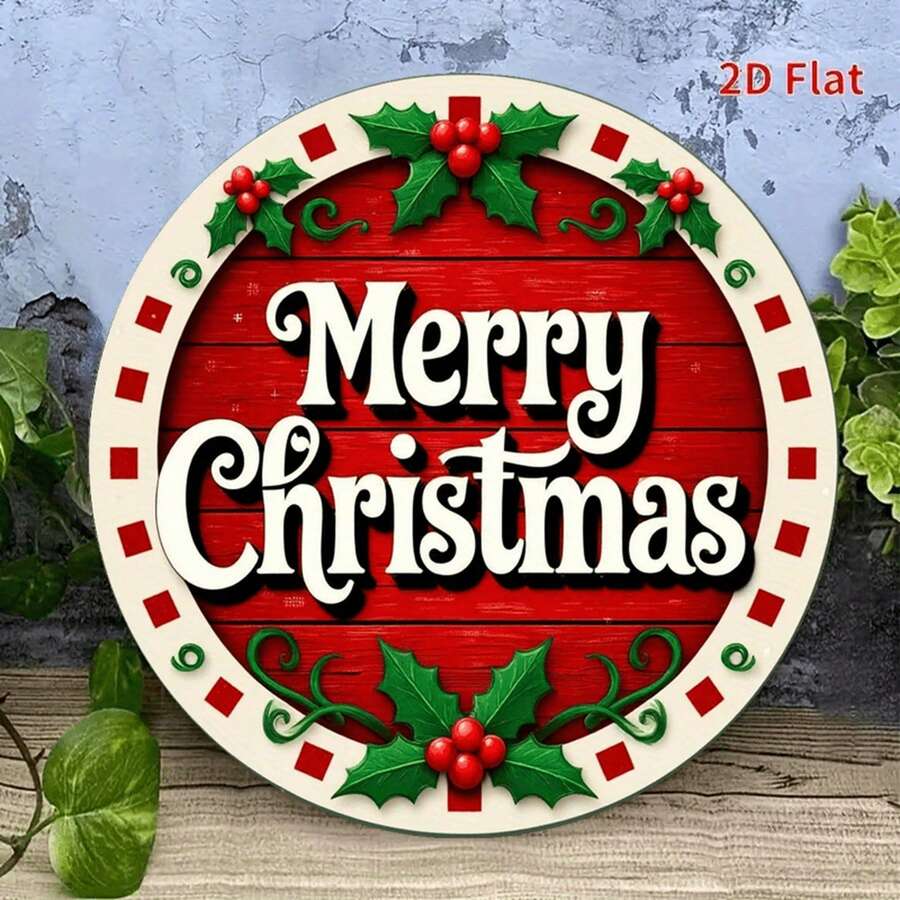 1pc Vintage Christmas Metal Wall Decor - Red Background Green Leaf Merry Christmas Sign - Heavy Duty Indoor Outdoor Holiday Decoration - Weather Resistant Home, Garden, Cafe, Bar Hanging Ornament - Pre-Drilled Easy Hanging No Wiring Needed - Holiday Atmosphere Decor, Random Hole Position