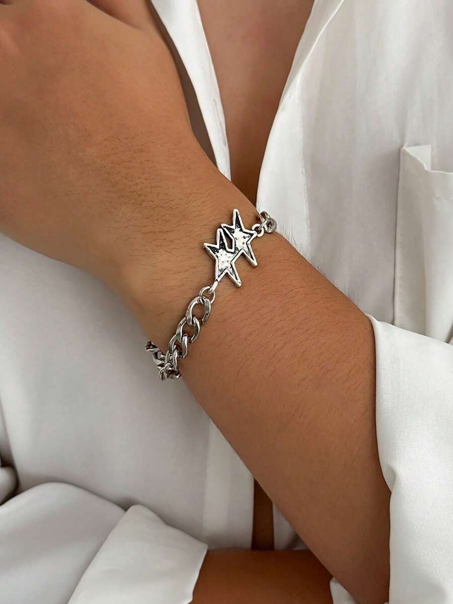 1pc Vintage Elegant Minimalist Multi-Color Crystal Chain Bracelet, Men's Fashion Casual Charm Accessory, Suitable For Daily And Party Wear