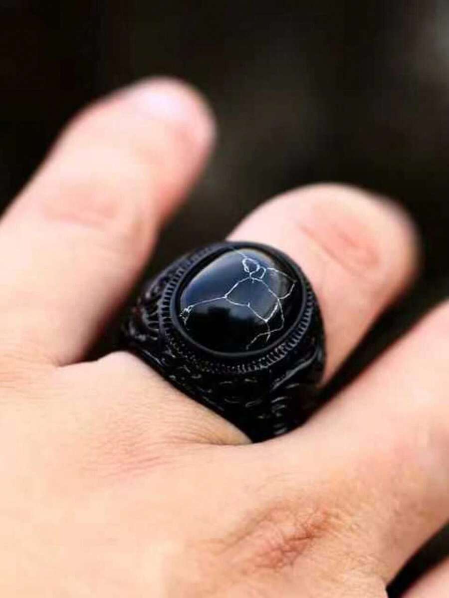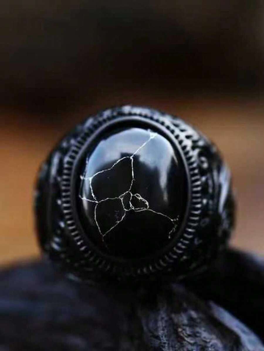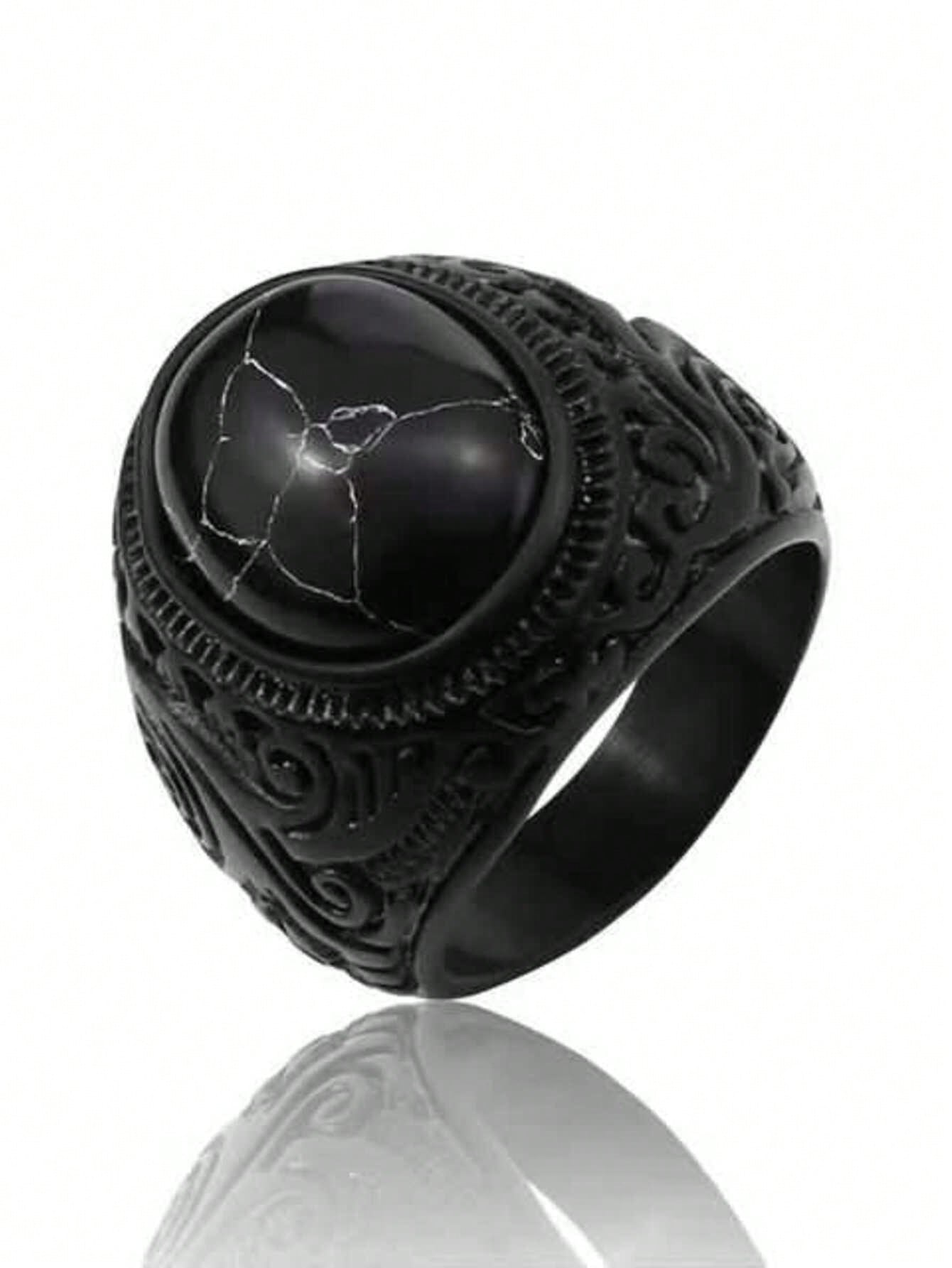 1pc Vintage European And American Style Alloy Ring With Black Turquoise & White Cracks For Men, Suitable For Daily Wear
