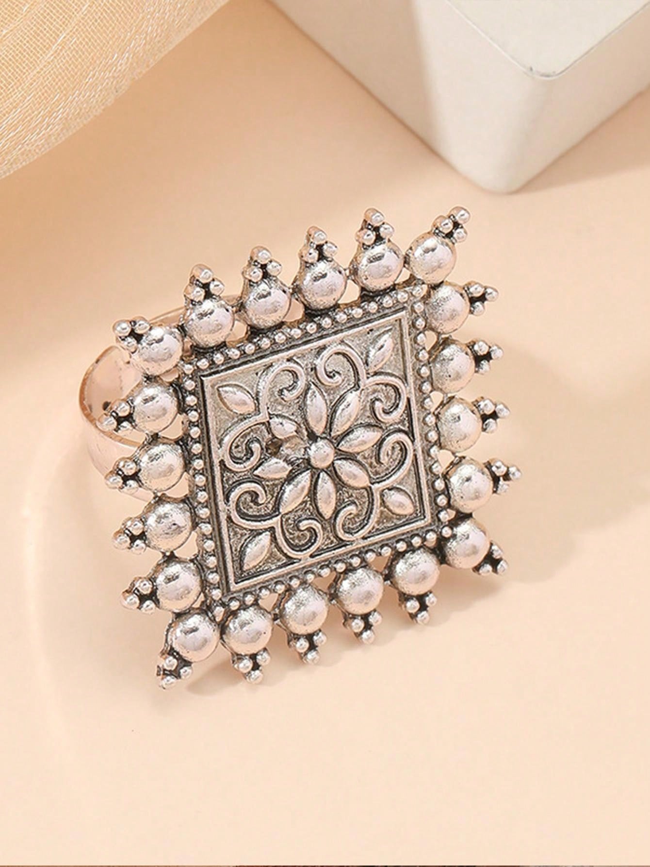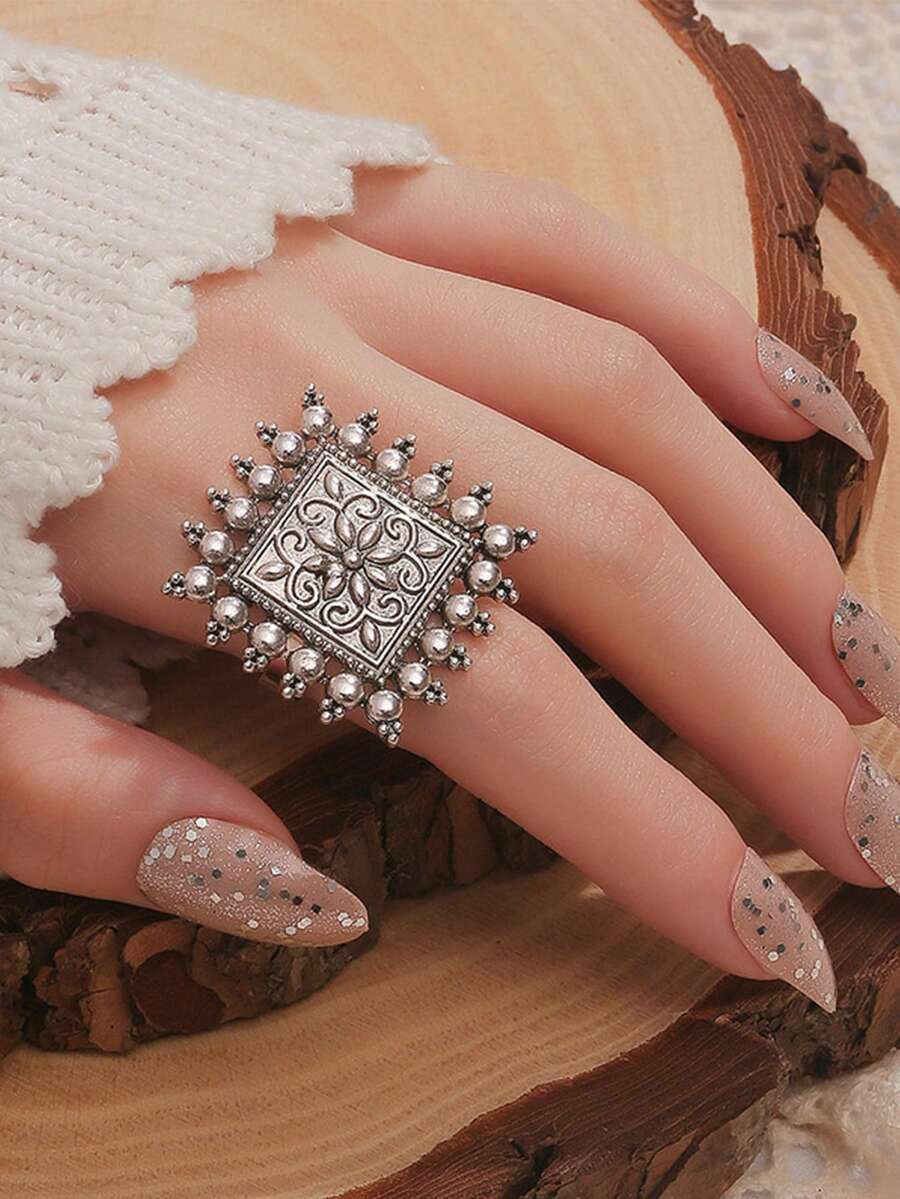 1pc Vintage Geometric Shape Ring For Men And Women, Adjustable Silver Finger Ring, Minimalist Personalized Hand Accessory