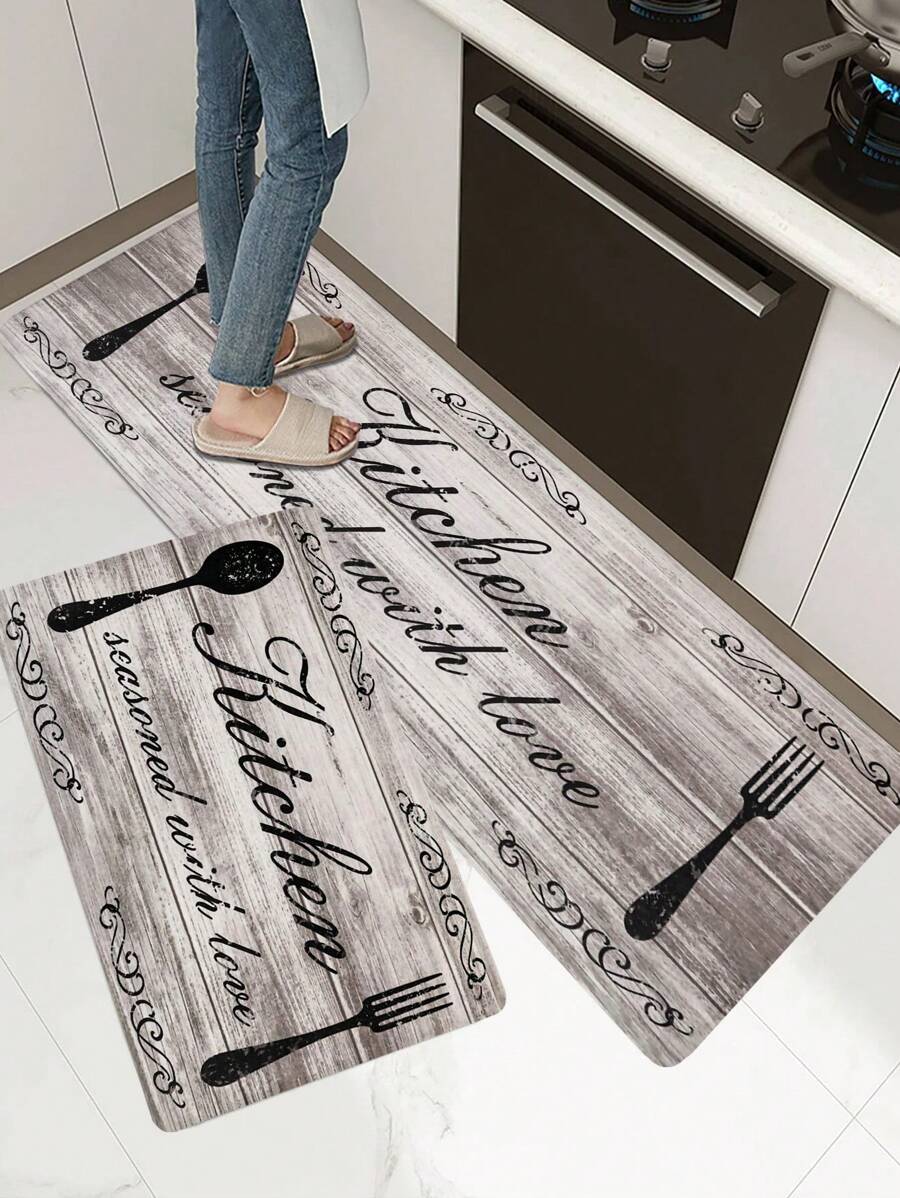 1pc Vintage Kitchen Print Fluffy Mat, Dirt-resistant Floor Mat, Machine Washable Kitchen Door Mat, Bathroom Water-absorbing Floor Mat, Living Room Bedroom Hallway Entrance Mat