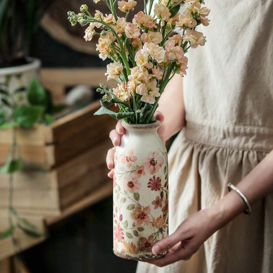 1pc Vintage Rural Style Ceramic Cracked Ice Texture Vase For Living Room Display, Flower Arrangement Decoration