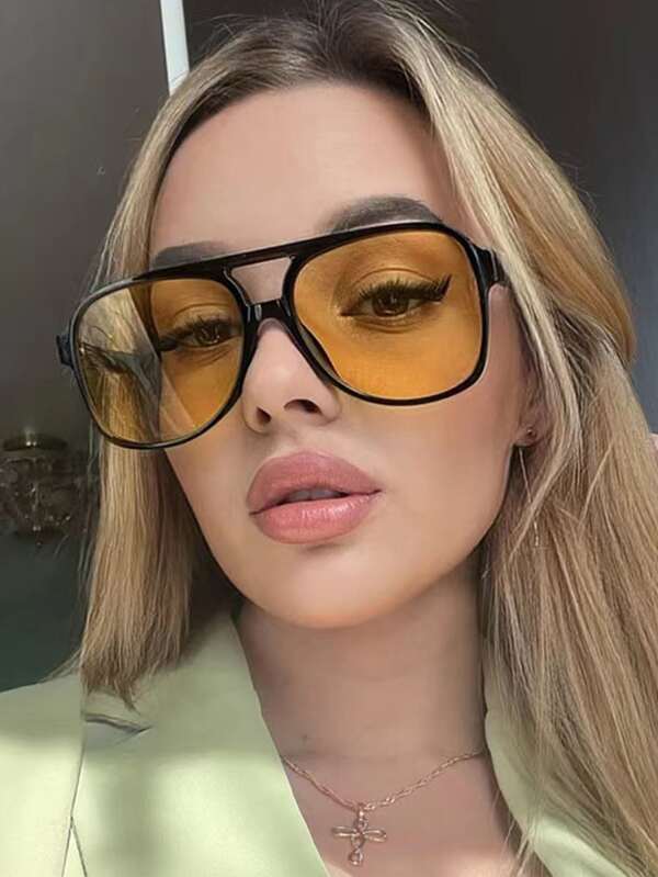 1pc Vintage Women's Oversized Sunglasses With Double Bridges, Black Frame