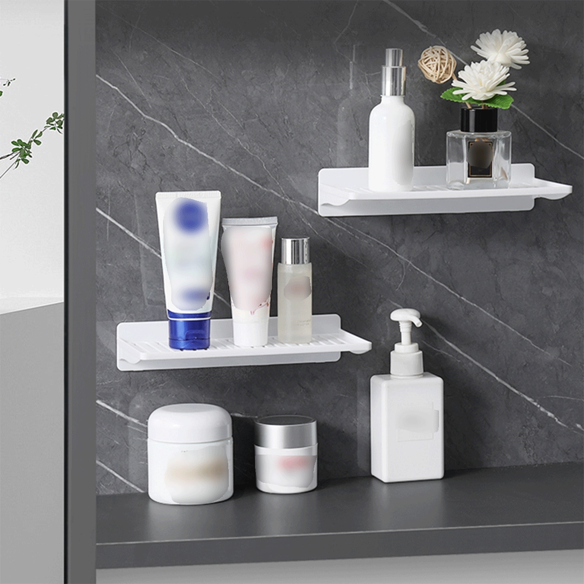 1pc Wall Mounted Mirror Cabinet Organizer, Bathroom Storage Rack