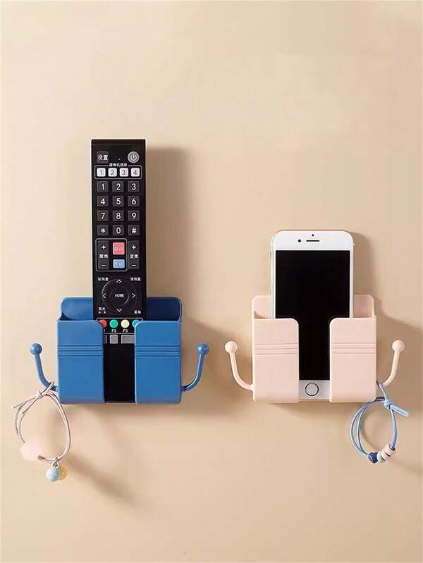 1pc Wall-mounted Multi-functional Bracket Mobile Phone Charging Storage Rack, No-punch Remote Control Storage Box