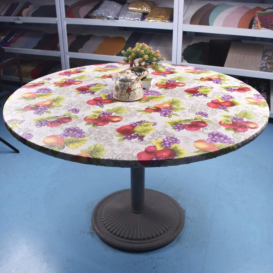 1pc Watermelon Print Vinyl Round Tablecloth With Elastic Edges, Waterproof And Oil-proof For Indoor And Outdoor Use