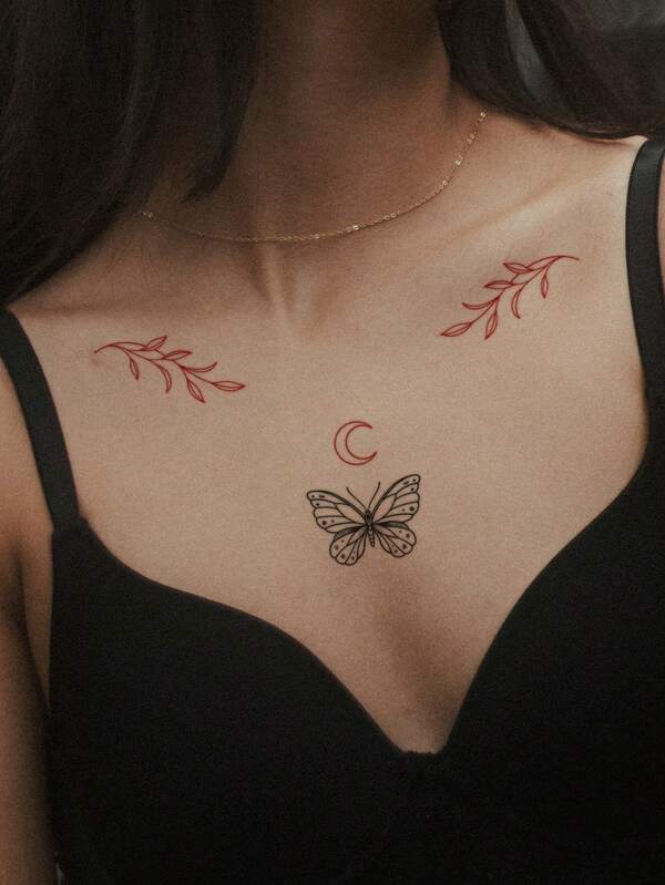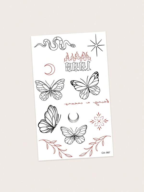 1pc Waterproof & Sweatproof Pvc Temporary Tattoo Sticker With Sexy Butterfly, Flame, Letter, Snake & Leaf Design, Suitable For Daily Use Of Trendsetters