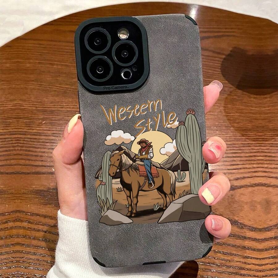1pc Western Style Jeans & Horse Design Shockproof Soft Phone Case For Iphone & Samsung 15/15plus/15pro/15pro Max