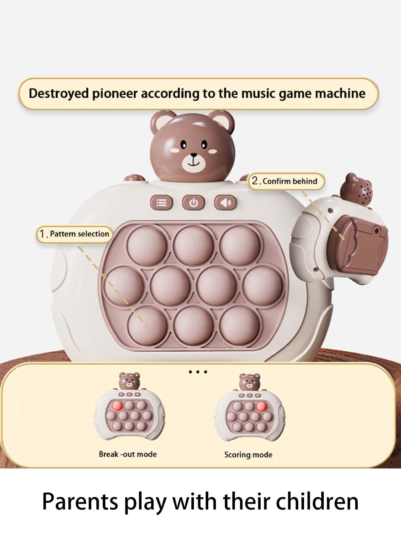1pc Whack-a-mole Push Along Electronic Game Machine Educational Toy For Children Focus Training & Stress Relief Parent-child Interactive Light Up Toy (battery Not Included)