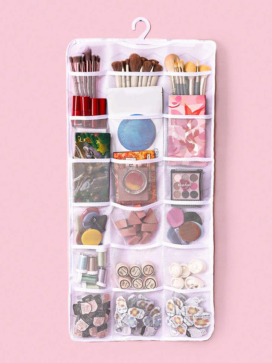 1pc White 18 Grids Multi-Functional Hanging Storage Bag For Cosmetics, Suitable For Bathroom, Bedroom, Etc.