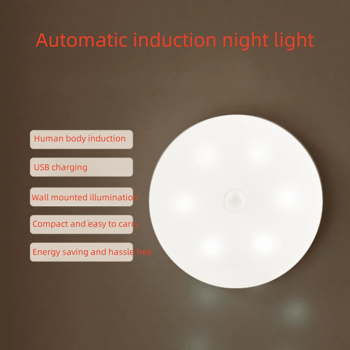 1pc White Abs Body Sensor Led Night Light, Usb Charging, For Bedroom, Hallway, Closet, Household