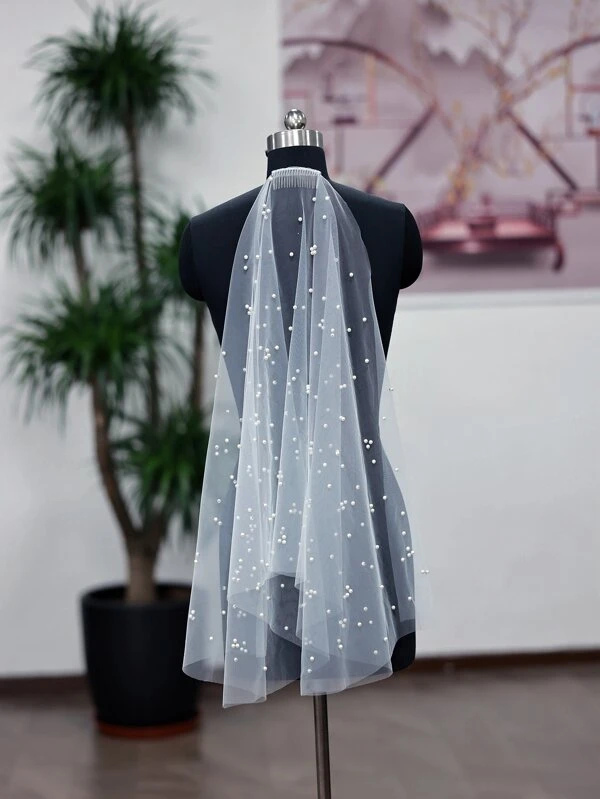 1pc White Baroque Style Short Bridal Wedding Party Performance Hair Comb With Pearl Tulle Veil