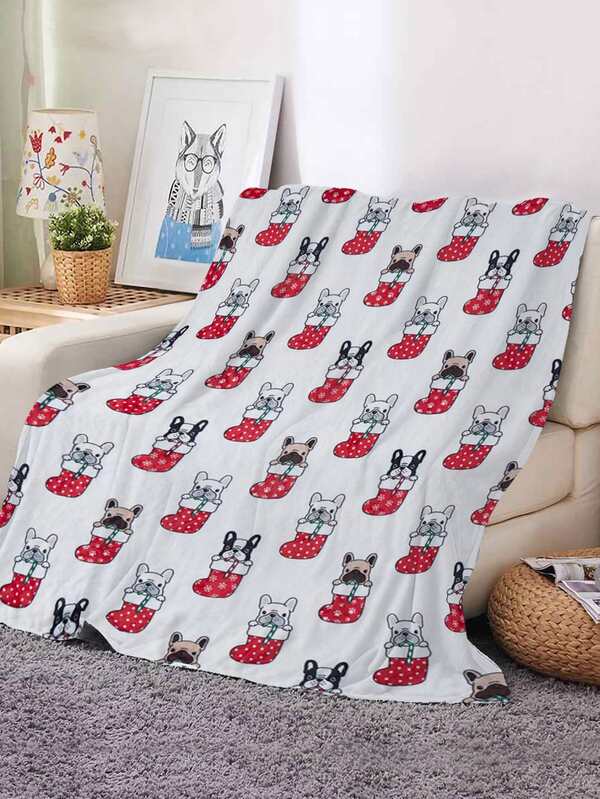 1pc White Christmas Stocking Pattern Printed Polyester Rectangular Throw Blanket With Modern Style, Allergy-free, Washable, Non-fading, Non-shedding, Suitable For Home Use, All Seasons