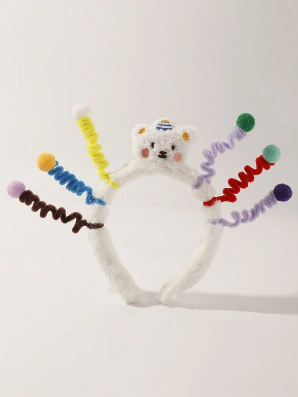 1pc White Cute Plush Teddy Bear Headband, Suitable For Parties, Dances, Festivals