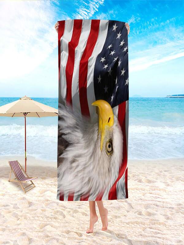 1pc White Eagle & American Flag Beach Towel, Ultra-Fine Fiber Outdoor Sport Towel, Super Absorbent Towel, Travel & Outdoor Gear