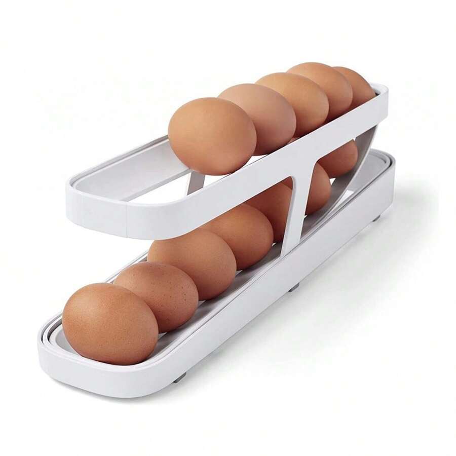 1pc White Egg Dispenser With 2-layer Egg Trays And Refrigerator Egg Storage Rack