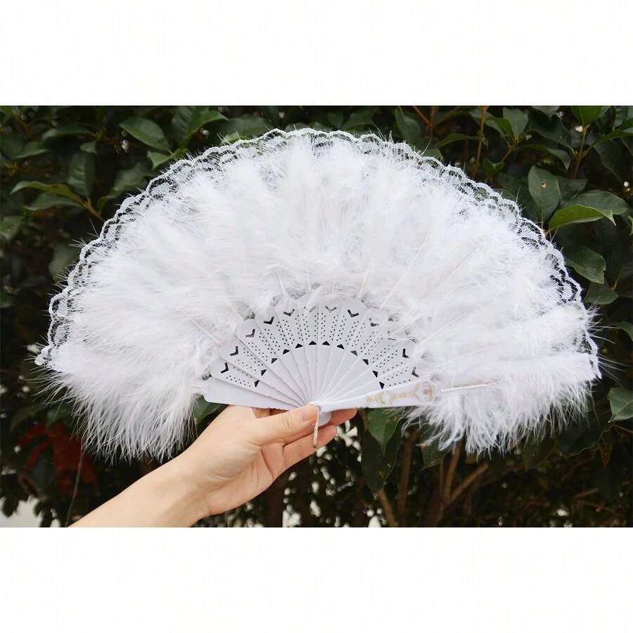 1pc White Feather & Lace Double Side Folding Fan With Pendant, Tea Party Photo Prop For Halloween Gatsby Party Festival Diy Photo Props 1920s Party