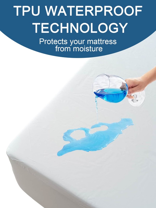 1pc White Mattress Cover, Polyester Fabric With Elastic Pocket, Fitted Style, Breathable, Machine Washable, Waterproof Mattress Protector, Suitable For Home Bedroom
