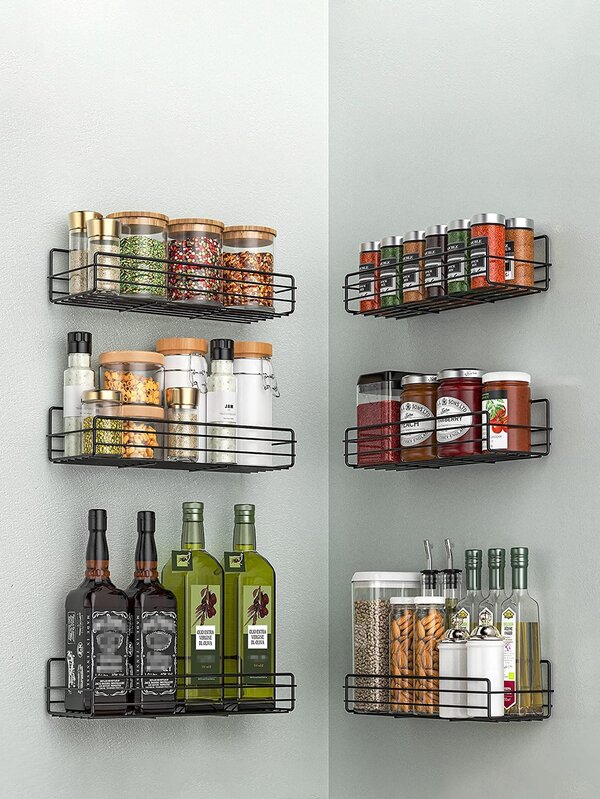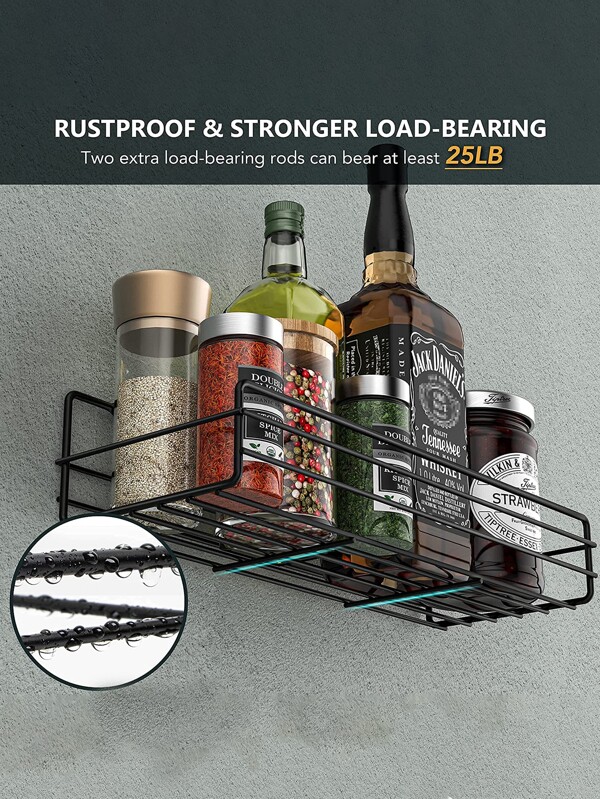 1pc White No Punching Kitchen Spice Jar Wall Organizer, Cabinet Door Storage Rack With Large Capacity