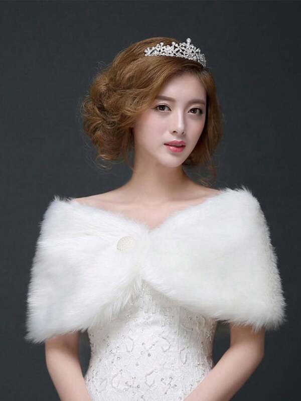 1pc White Plush Wedding Shawl, Bridal Cloak, Bridal Cape, Suitable For Shoulder Width 40cm