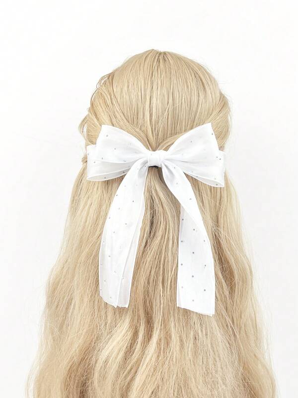 1pc White Rhinestone Gauze Elegant Fashionable Butterfly Knot Duckbill Clip Hairclip As Hair Accessory Or Gift To Friends Or Girlfriends, Suitable For Daily Wear, Street Snap, Holiday Travel, And Four Seasons Matching