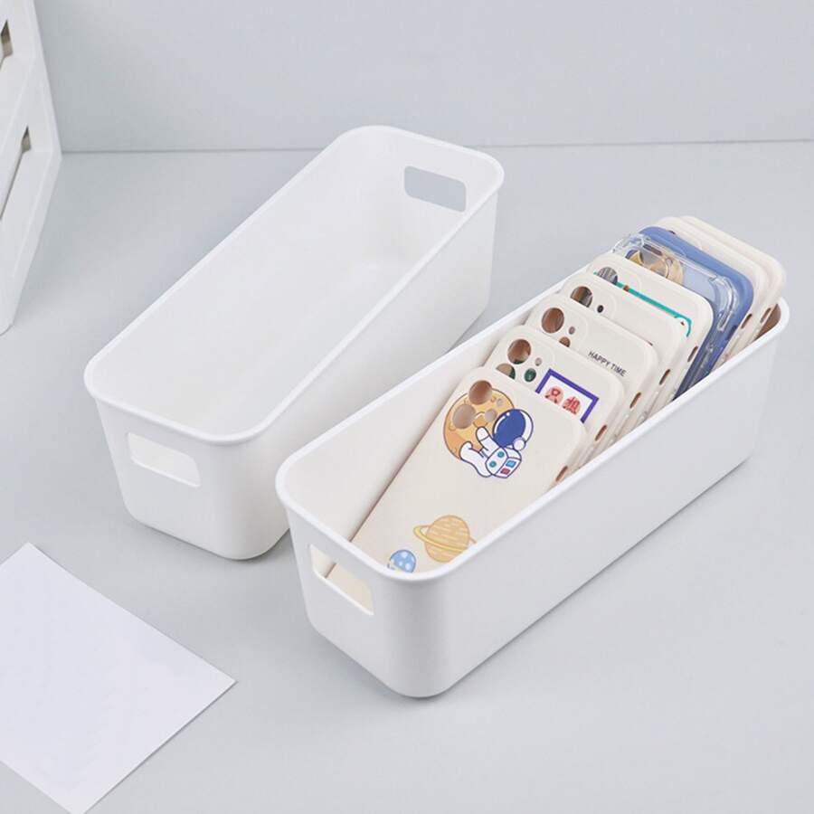 1pc White Storage Basket, For Home Use To Store Makeup, Snacks, Phone Cases On Desktop, Or To Organize Bathroom, Kitchen