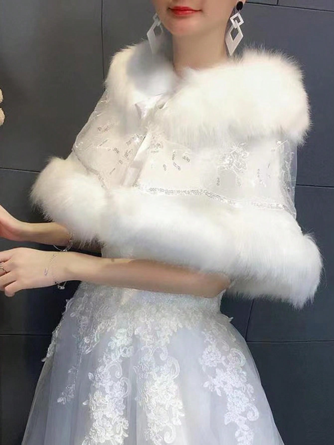 1pc White Wedding Shawl With Net Veil And Embellished, Elegant Bridal Cape For Bridesmaids At Wedding, Banquet, Party