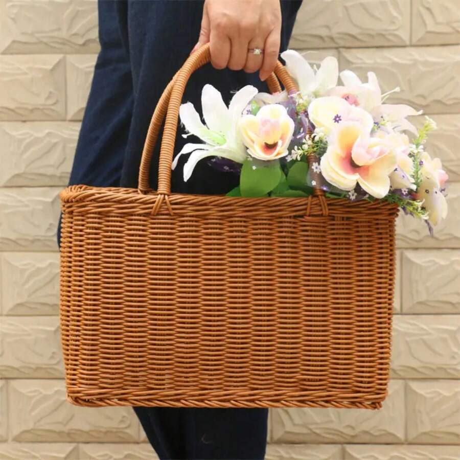 1pc Wicker Picnic Basket With Handle, Handmade Creative And Decorative Willow Weaving Basket For Shopping Market Or Picnic. The Soft Wicker Material Is Strong And Has Good Flexibility. It May Be Slightly Deformed During Transportation, But It Can Recover On Its Own. No Need To Worry.