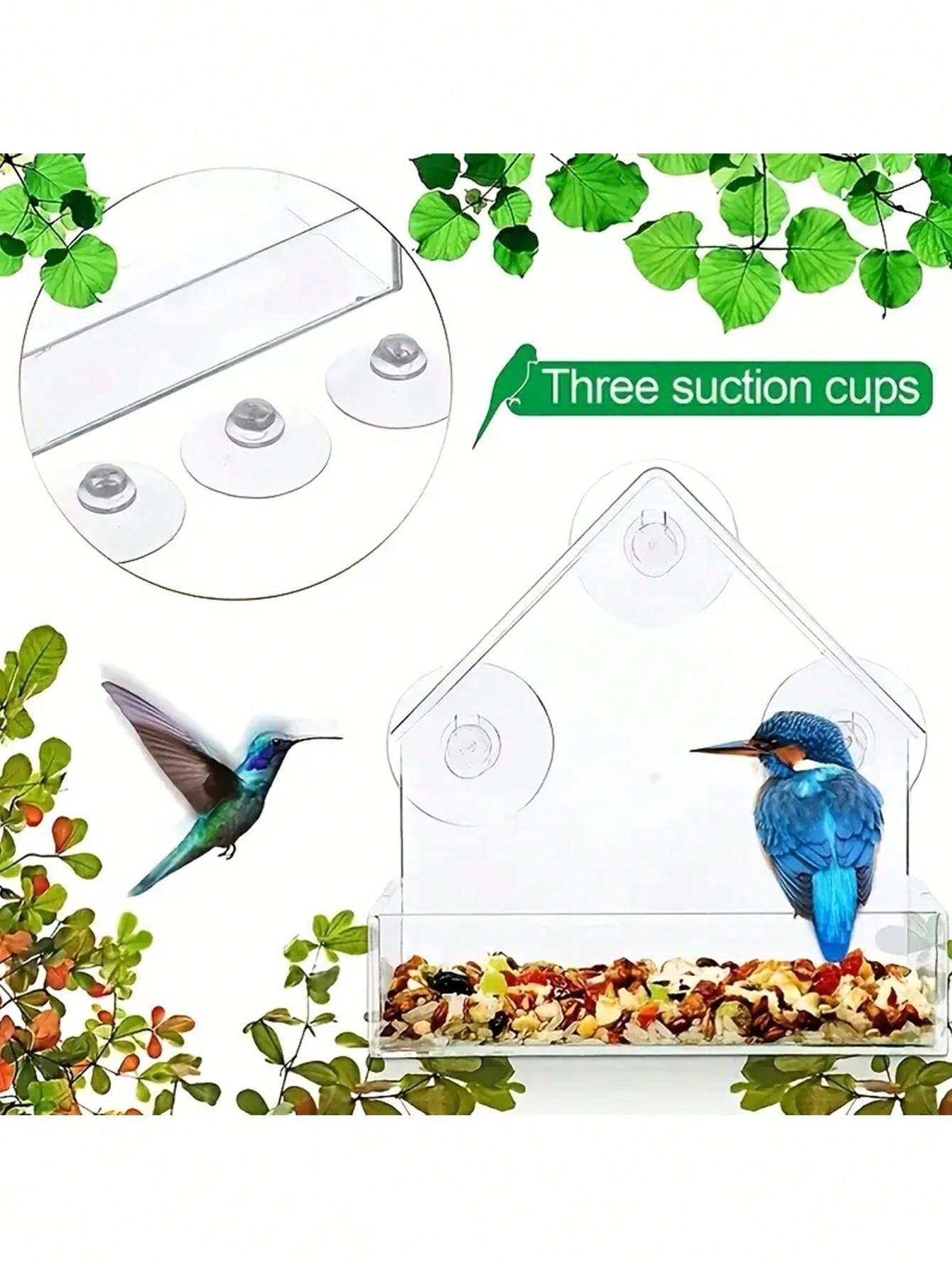 1pc Window Bird Feeder, Hanging Large Bird Feeder, Clear Bird Feeder, Acrylic Bird Feeder With Suction Cup Pet Supplies Clear Wall Hanging Bird Cage