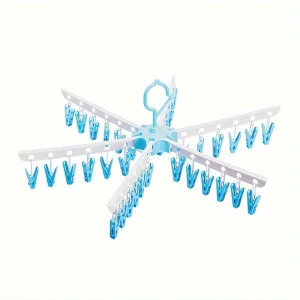 1pc Windproof Hanger With 36 Plastic Small Clips, Umbrella Shaped Underwear Drying Rack, Rotating Non-Slip Socks Rack, Plastic Clothes Hanger Hanging Rack