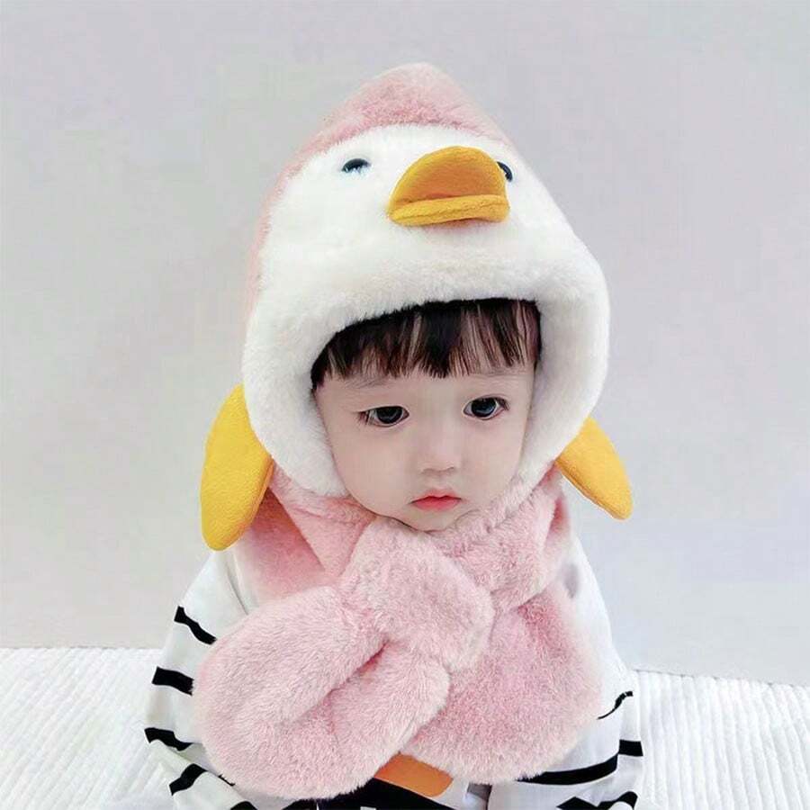 1pc Winter Children'S Hat Scarf Set Cute Cartoon Duck Plush Hat And Scarf Combination For Boys And Girls' Warmth