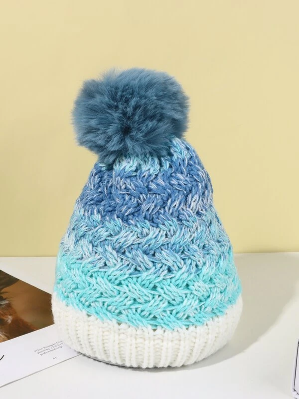 1pc Winter Knitted Hat With Pom Pom And Ear Flaps, Suitable For Boys And Girls, Cute And Sweet, Festive Atmosphere, Suitable For Daily Wear