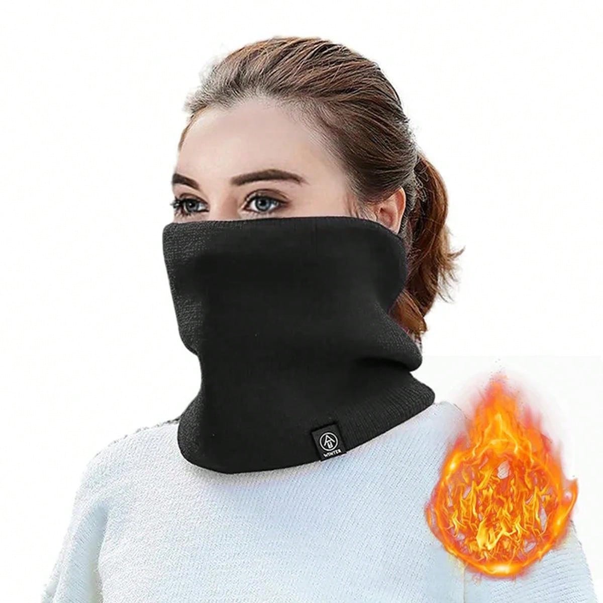 1pc Winter Thickened Knitted Hat & Scarf Combination With Face Covering Design, Unisex, Suitable For Outdoor Activities & Cycling, Keep Neck And Spine Warm