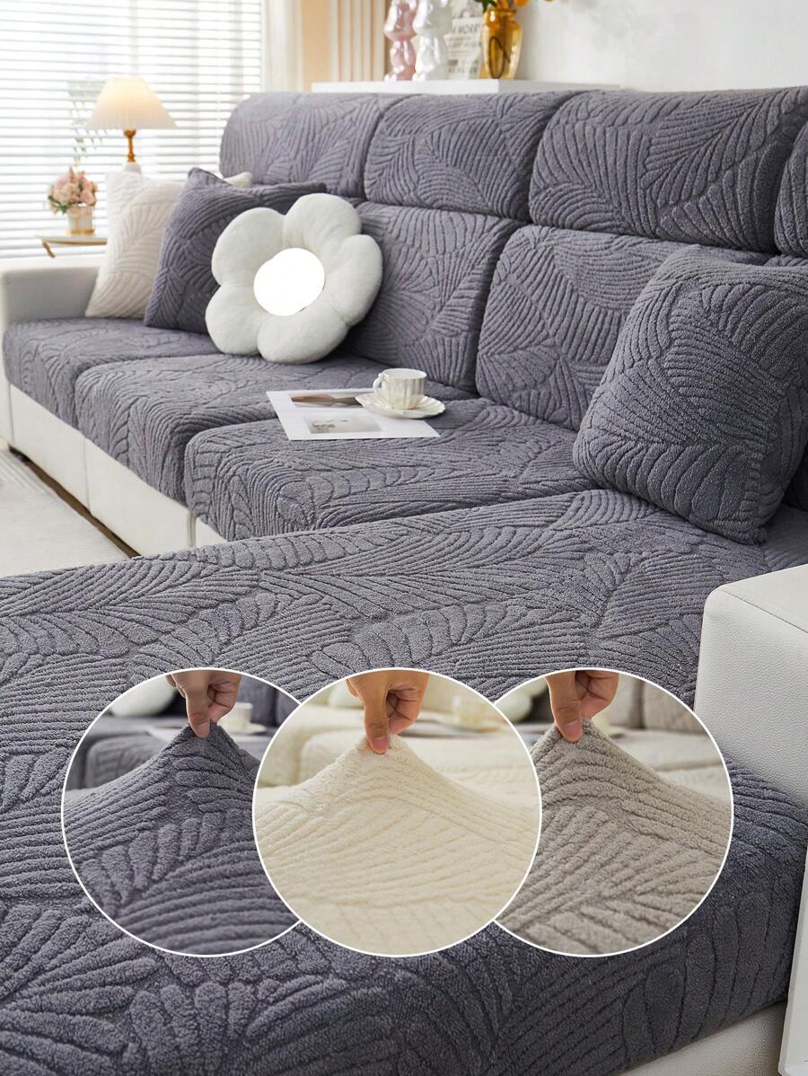 1pc Winter Thickened Warm Jacquard Anti-Slip Sofa Cover For Four Seasons, Simple Modern Style Soft And Skin-Friendly Pet-Proof Elastic Slipcover, Anti-Scratch Solid Color Sofa Case Suitable For Living Room L-Shaped Sofa And 1/2/3/4-Seat Sofa (Sold In Single Piece)