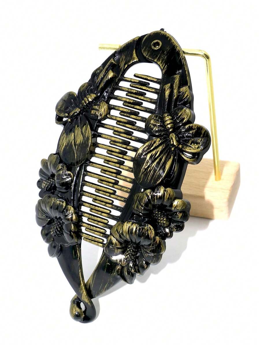 1pc Women's Antique Bronze-Color Large Banana Hair Clip, Elastic Banana Clip Hair Comb For Thick Hair Ponytail Holder Interlocking, Ladies' Hair Styling Tool