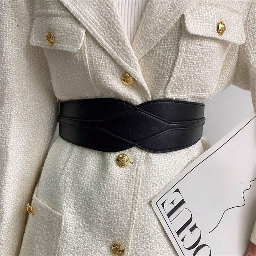 1pc Women'S Black Waistband With Elasticity New Retro Fashion Decorative Belt