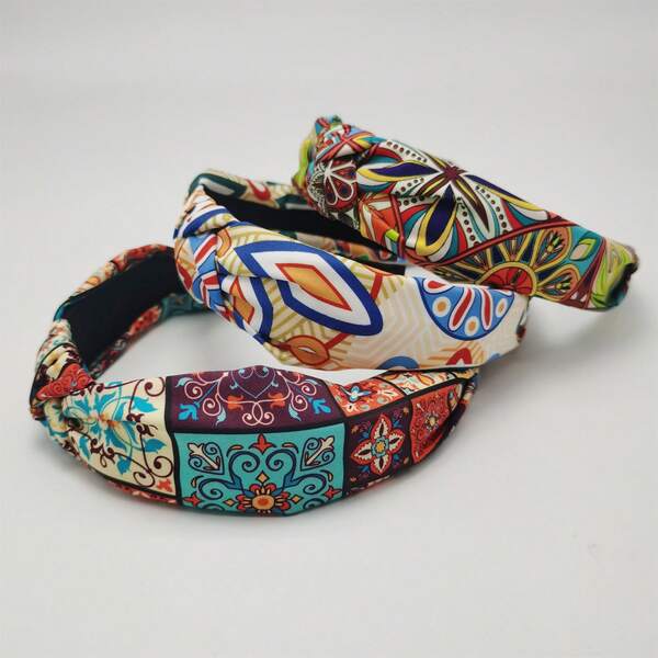 1pc Women'S Bohemian Style Geometric Pattern Visual Diamond Shaped Fashion Headband For Daily Wear, Festive Party Dress-Up
