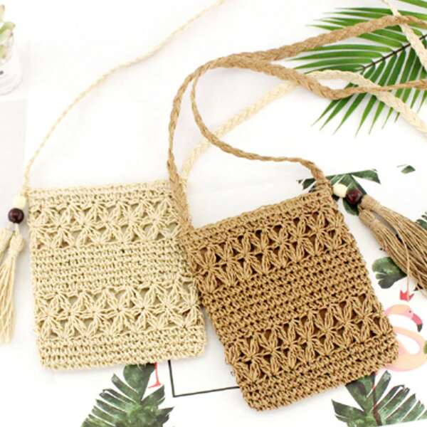 1pc Women'S Casual Hollow Out Braided Single Shoulder Crossbody Tassel Straw Beach Bag