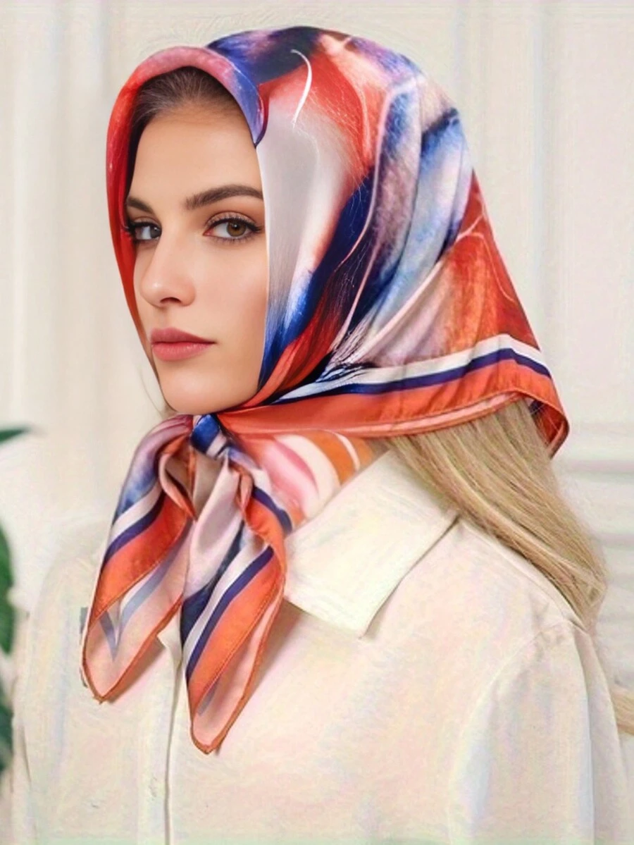 1pc Women'S Elegant Style Fashionable Printed Soft Multicolor Square Scarf, Suitable For Variety Uses