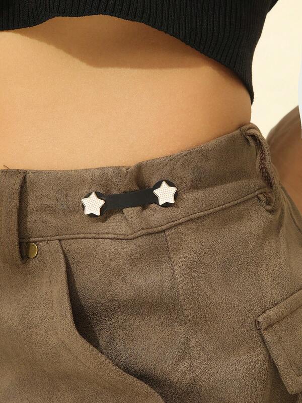 1pc Women'S Fashionable Metal Star Shaped Waistband With Detachable Adjustable Leather Cord For Skirt/Pants Prevent Belly Exposed Suitable For Daily Casual Wear Great As Christmas Gift For Friends