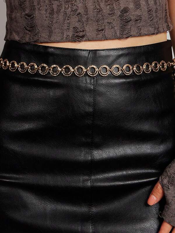 1pc Women'S Gold Double Circle Metal Chain Belt Fashionable Waist Chain Suitable For Daily Wear With Dresses And As Body Chain