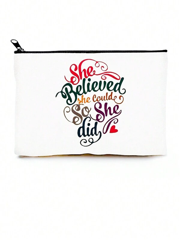 1pc Women'S Inspirational Quote Makeup Bag - Travel Toiletry Cosmetic Organizer Zipper Pouch - Motivational Gift - She Believed She Could So She Did