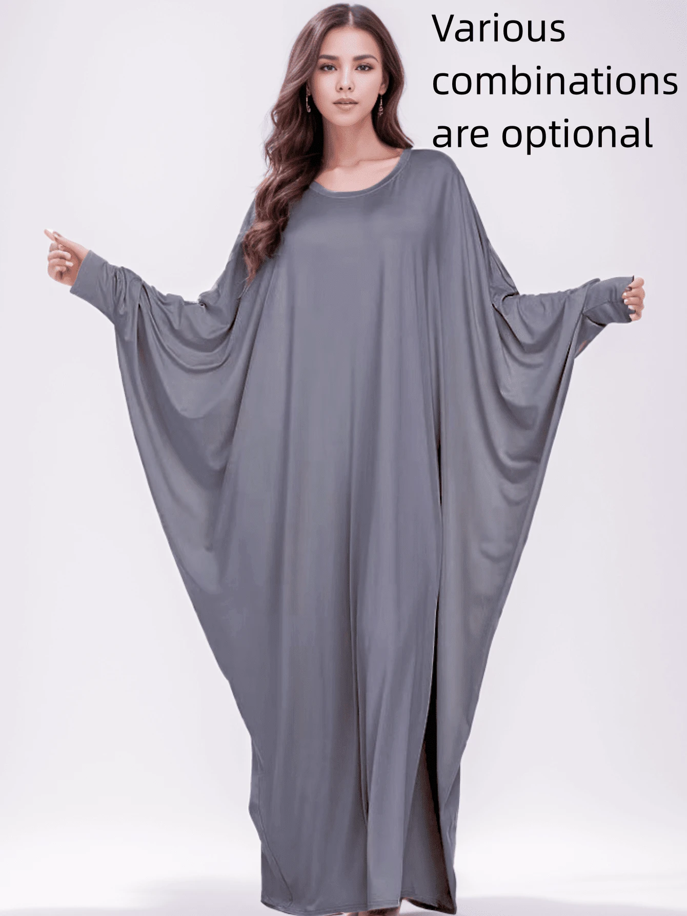 1pc Women'S Jersey Elastic Waist Batwing Top & Headwrap (Abaya)