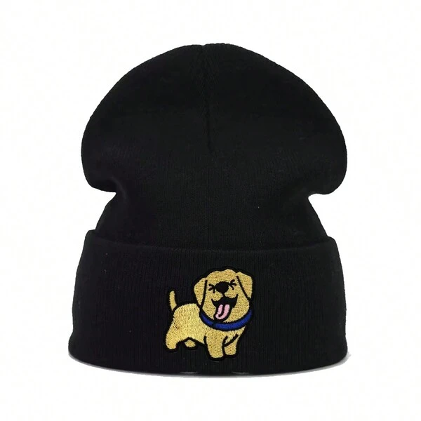 1pc Women'S Knitted Hat Cute Chinook Dog Embroidery Beanie Winter Hat Knitted Hat Women'S Accessories