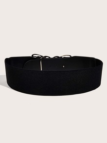 1pc Women'S Metal Butterfly Buckle Detail Black Pu Adjustable Waist Belt, Suitable For Daily Wear With Dresses And Coats