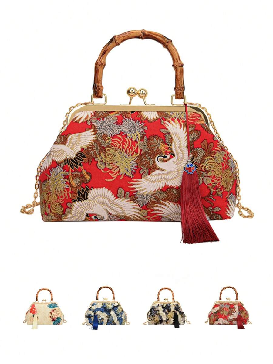 1pc Women'S Red Chinese Style Vintage Evening Bag,Elegant Handbag With Embroidery For Banquet Or Wedding Party