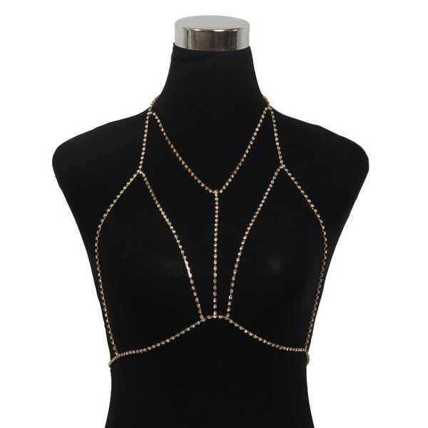 1pc Women'S Sexy Multilayer Crystal Decorated Chain Necklace With Cross & Body Chain, Perfect For Bohemian Beach Style
