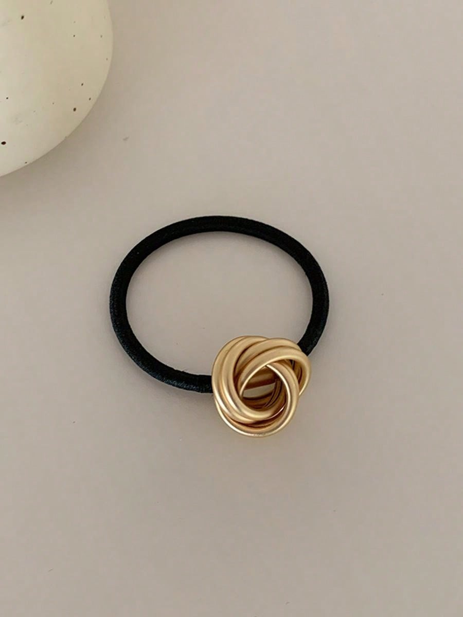 1pc Women'S Simple & Versatile Elastic Hair Tie With Twisted Metallic Ring & High Stretch