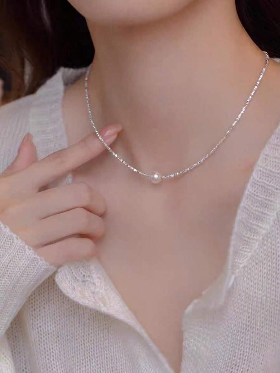 1pc Women'S Simple Double Layered Necklace With Bell, Lock, Beads, And Pearl Pendant
