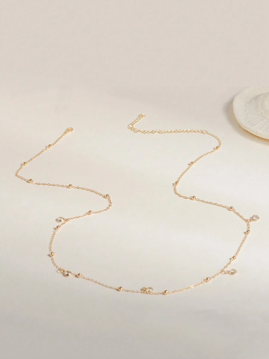1pc Women'S Simple Style Gold-Colored Chain Beaded Waist Chain
